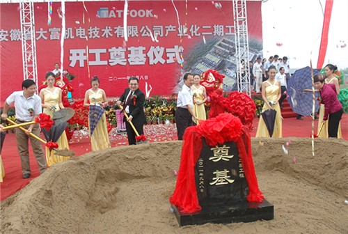 9月8日上午9点58分,伴着隆隆的礼炮声与欢快的迎宾曲,安徽省大富机电技术有限公司产业化二期工程开工奠基仪式在安徽怀远经济开发区隆重举行。