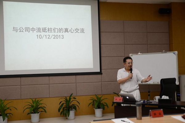 随后,董事长以《与公司中流砥柱们的真心交流》为主题,与在场核心骨干进行了长达两个半小时的交流。孙总首先对始终伴随公司成长不离不弃的老员工表示真心感谢,并检讨在公司的管理和发展过程中自身存在的缺点和不足。孙总发自内心的真情实感深深打动了在场的每一个人。紧接着,孙总言简意赅地介绍了公司的发展历程,并富有激情地展示了公司未来战略规划与愿景,通过详实的数据呈现、市场分析及战略思想的有机结合,为全体中高层描绘了基于实业超越梦想的宏伟蓝图。孙总指示,希望各位中高层骨干将具有正能量的理念和观点传递给基层员工,帮助他们建立远大理想,立足本职工作,贡献自己的力量服务社会及国家。